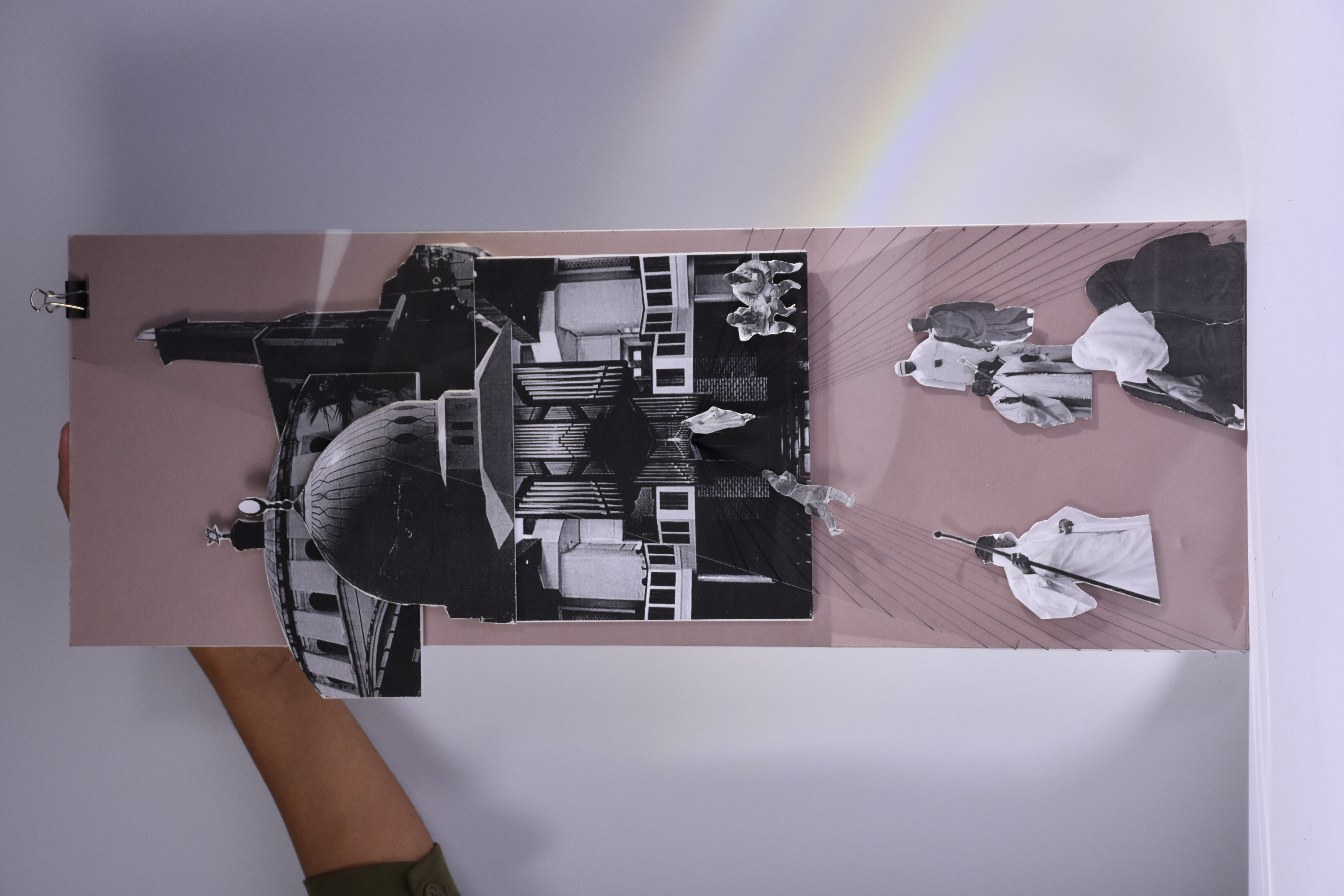 Three performances are conducted using the sari to represent different aspects of identity and spatial relationships. The first performance involves wearing traditional clothing and explores how the body becomes an active agent in shaping and responding to the surrounding space. The second performance reinterprets the concept of a mosque as wearable architecture, allowing the individual to carry and inhabit the mosque as they move through different environments. The third performance, inspired by cultural practices and rituals, uses the dastharkhwan (tablecloth) to explore how individuals use space and the body to express their identity and beliefs.